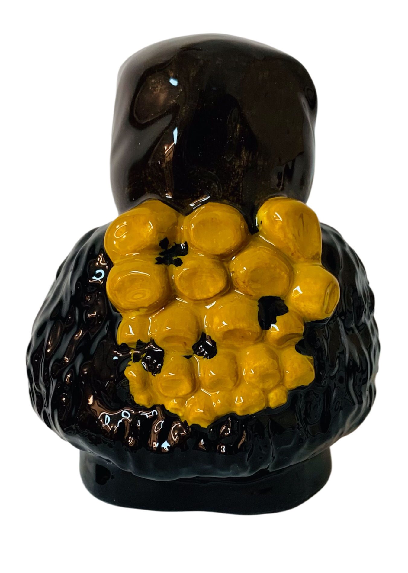 Questa campanella in ceramica fatta a mano rappresenta il Mamuthone, la maschera tradizionale di Mamoiada, reinterpretata nello stile inconfondibile LoOK Sardinia.